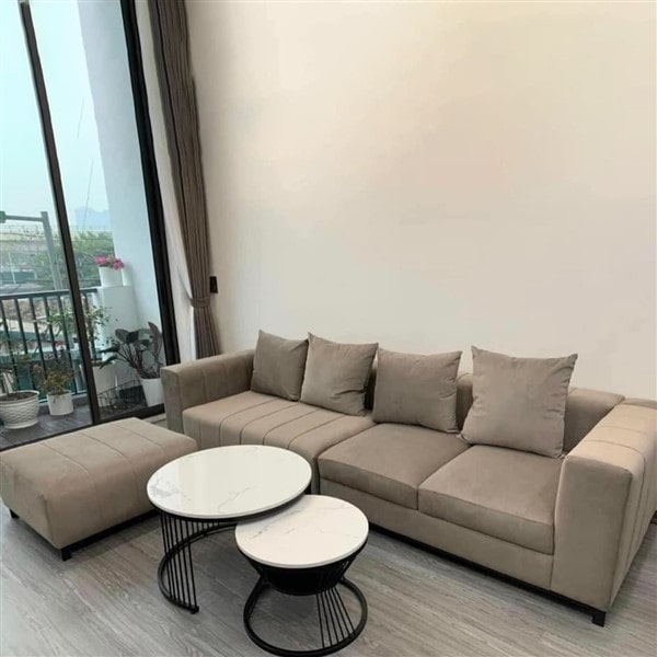 Vải nỉ mang lại cảm giác mềm mại và ấm áp, rất phù hợp với không gian phòng khách hiện đại.